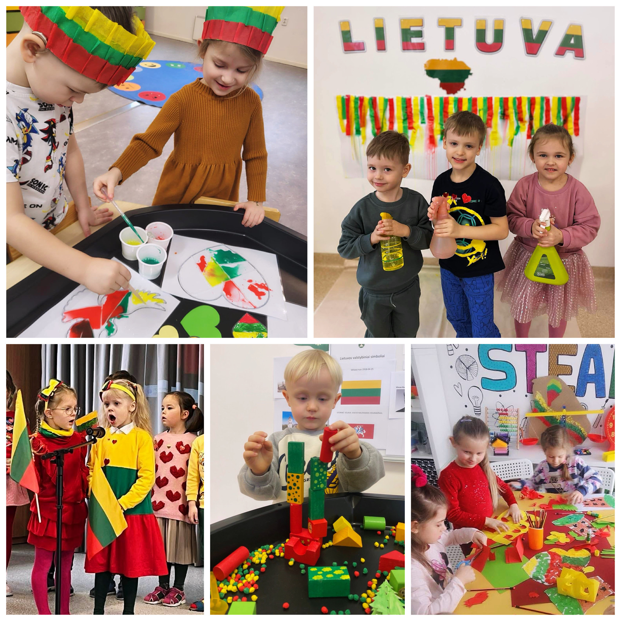 Kūrybinė savaitė buvo kupina juoko, smalsumo ir atradimų. Vaikai kūrė, tyrinėjo trispalvės spalvas, eksperimentavo, dainavo, deklamavo ir dalijosi savo džiaugsmu su draugais.